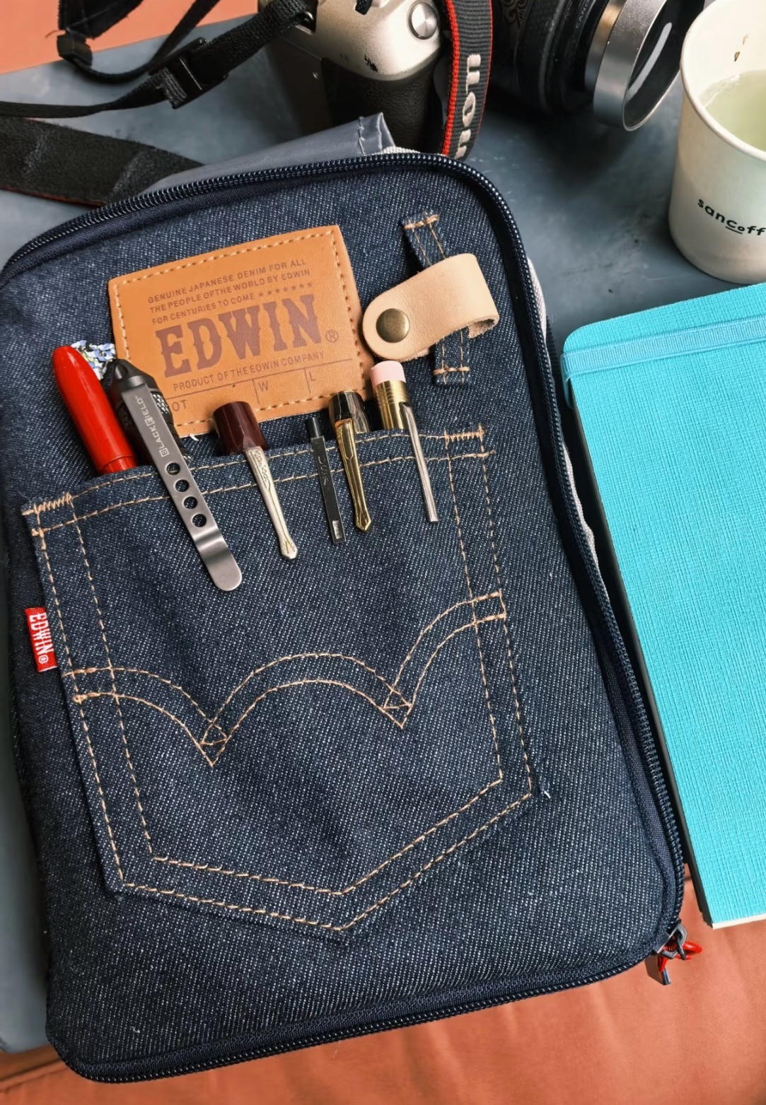 標誌性Edwin牛仔設計的一款收納包,超具個性! 實用性滿滿👍🏻 包包可以收納大量物品,用來放文具,筆記簿,B5文件,Mini iPad,手機等等絕對無問題✅ 裏面有分層格數,方便整理分類不同物品,包包前面還有一個小袋可以放細小物品❤️ 是一款性價比高嘅物品❤️ 尺寸:24*16.5*2cm