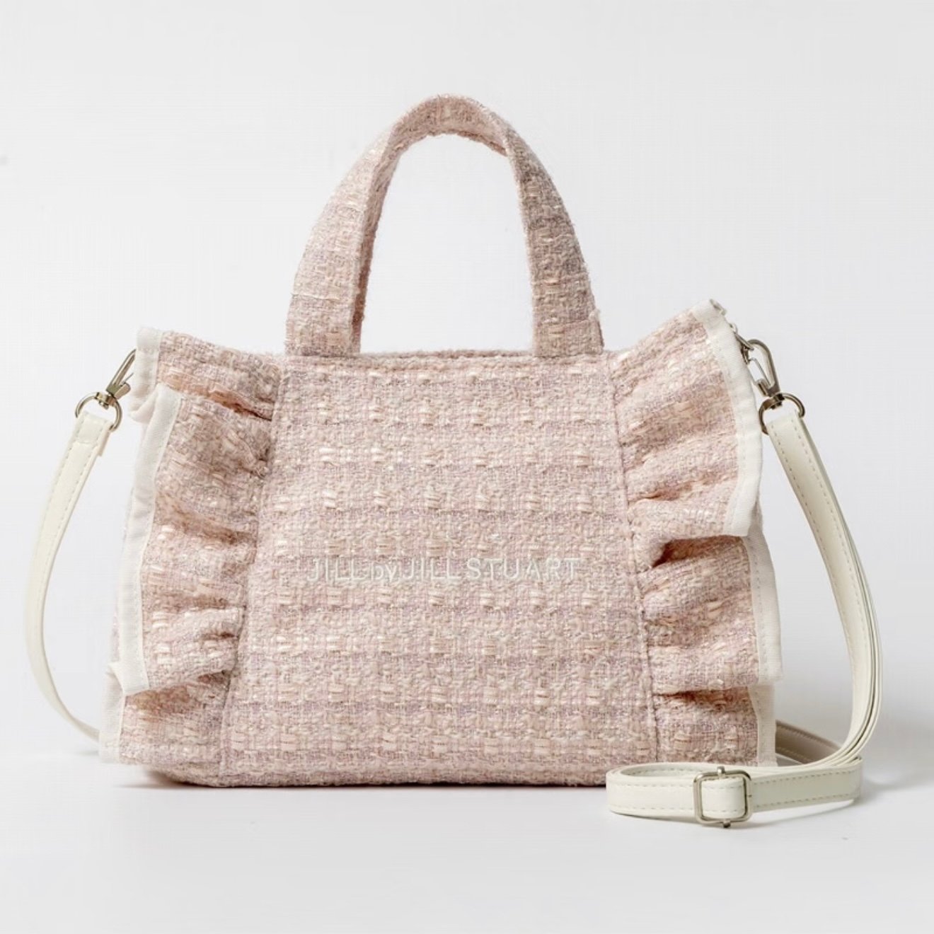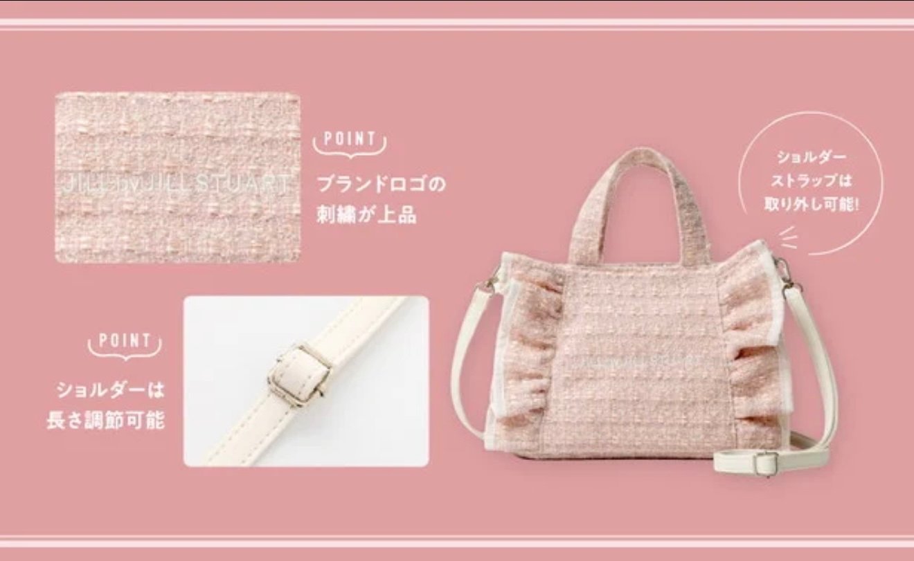 ⭐️日本寶島社雜誌限定⭐️ 最新Jill Stuart 粉色粗毛呢荷葉邊兩用手拿包 單肩包 斜挎包 可拆卸