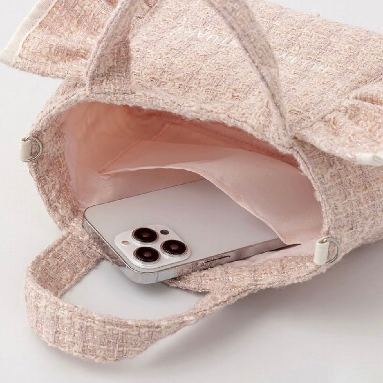 ⭐️2025年10月寶島社最新雜誌贈品⭐️ 粉色粗毛呢編織,配上荷葉邊設計,十分甜美💖亦非常適合秋冬使用 包包配有手挽和肩帶,可以手挽或單肩斜挎兩用。肩帶還可以拆卸和自由調節長短,實用性高! 包包容量可足夠收納日常外出用品,可放置500毫升水瓶。而且內有小格方便放置小型或重要物品❤️ 尺寸:22*18*9.5cm (肩帶最長:120cm)