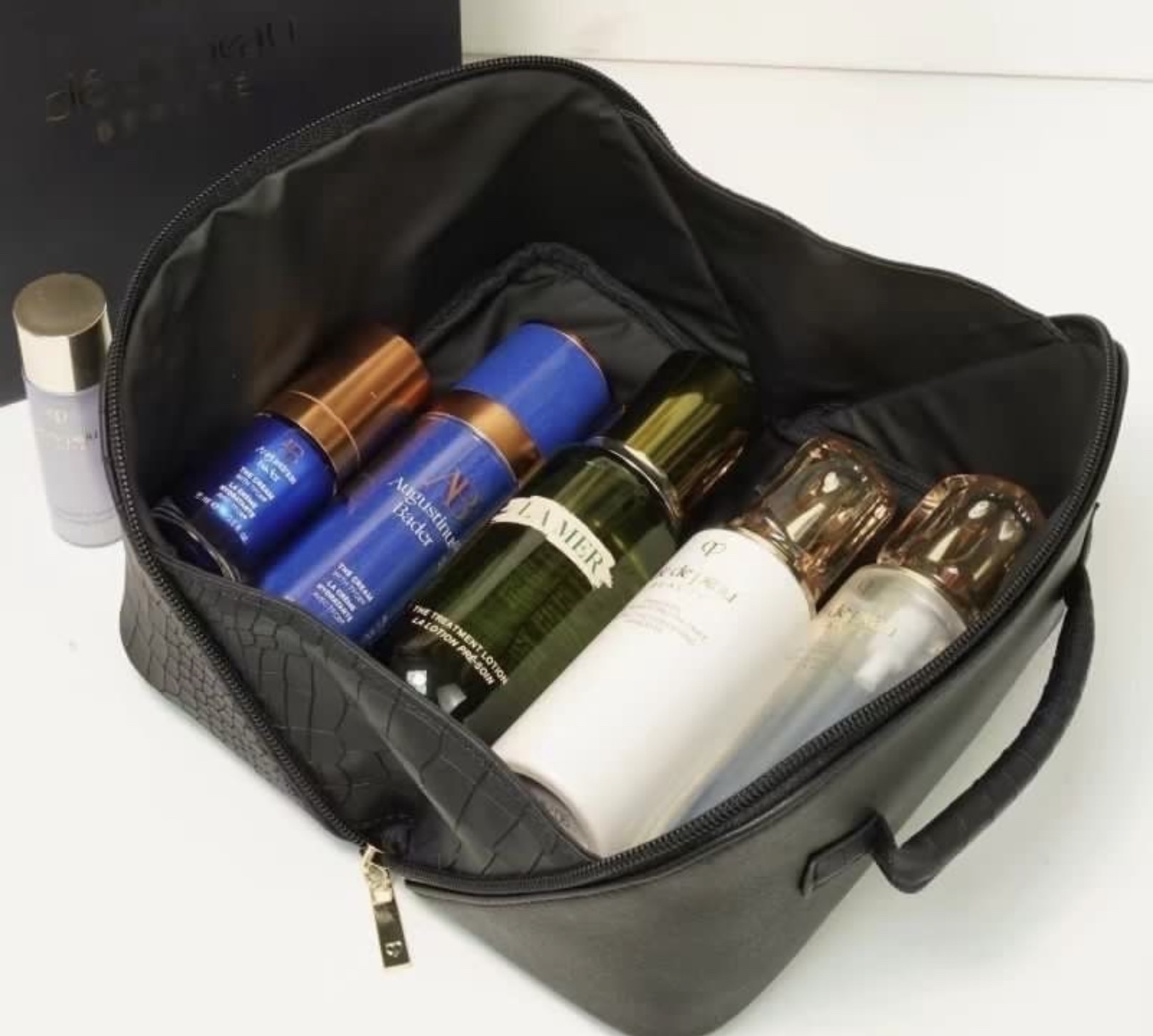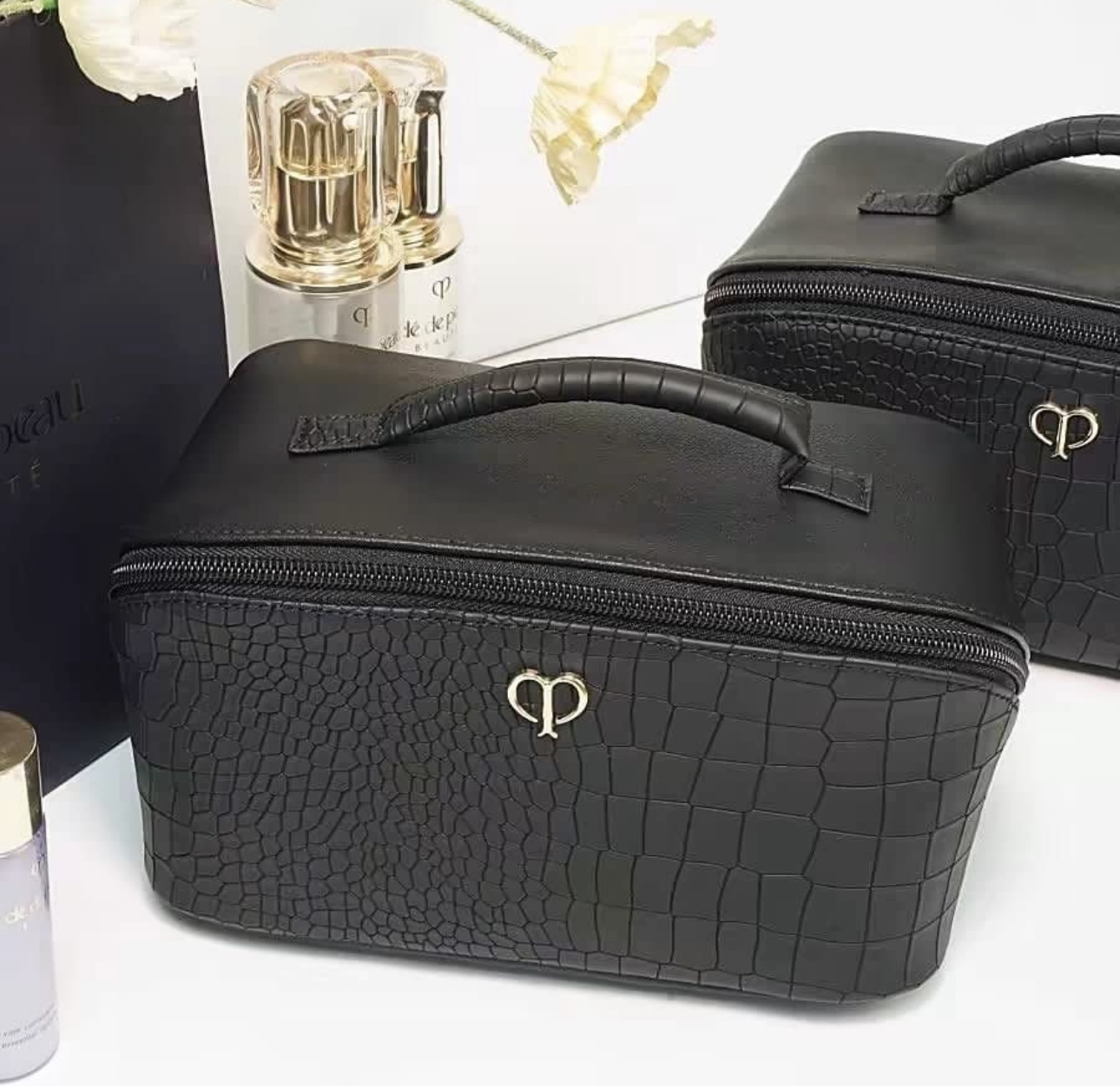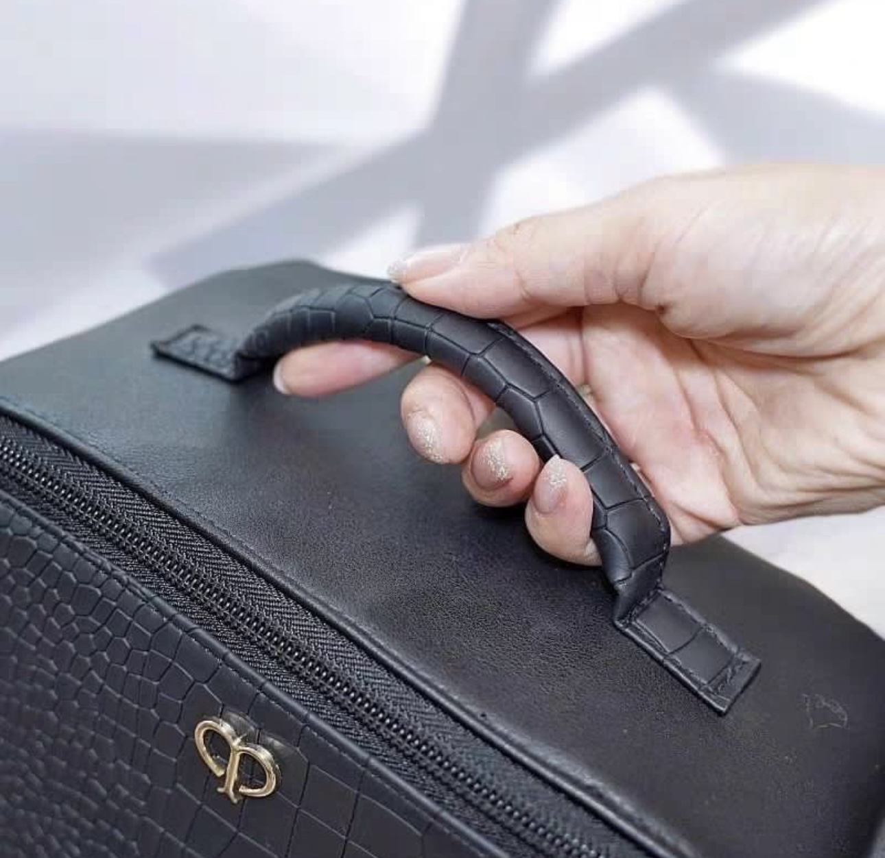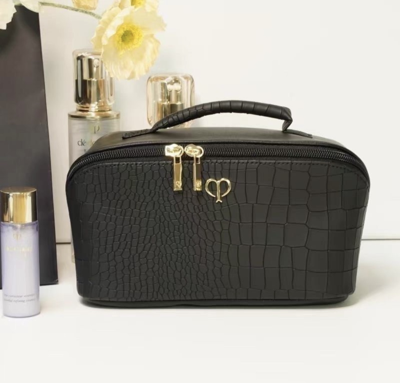 ⭐️CPB⭐️ 超大容量防水鱷魚紋黑色手提化妝包 收納包 旅行包