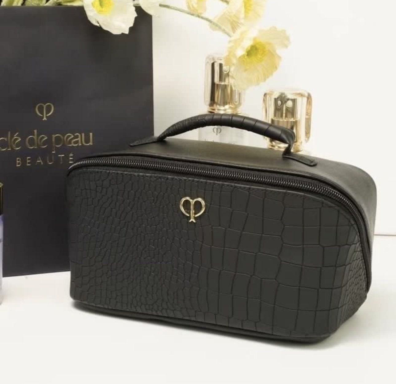 💯全新+💯正品 CPB的贈品永遠都無令人失望!鱷魚紋PU皮面料厚實,防水耐用,質感非常高級! 圓潤包身配上手提帶,時尚亦都方便出行攜帶! 超大容量,可放大量護膚品化妝品,去多日旅行都完全無問題👌🏻 尺寸:22*15*12cm