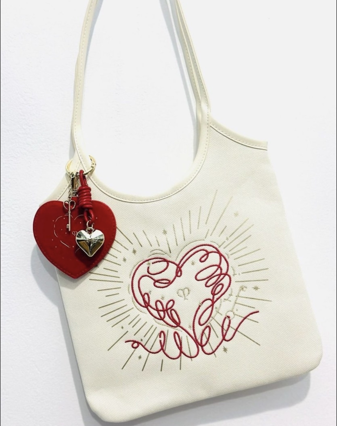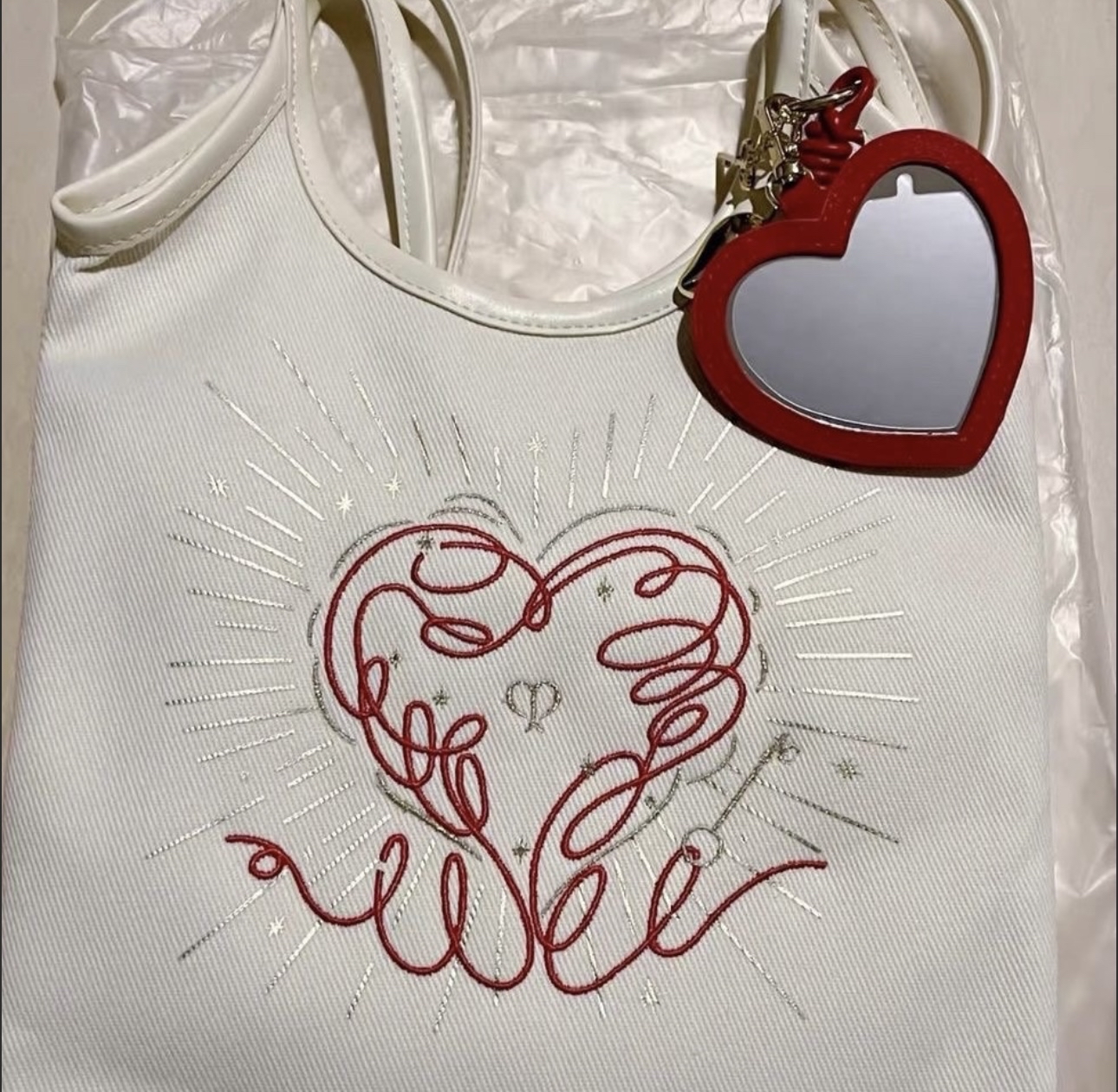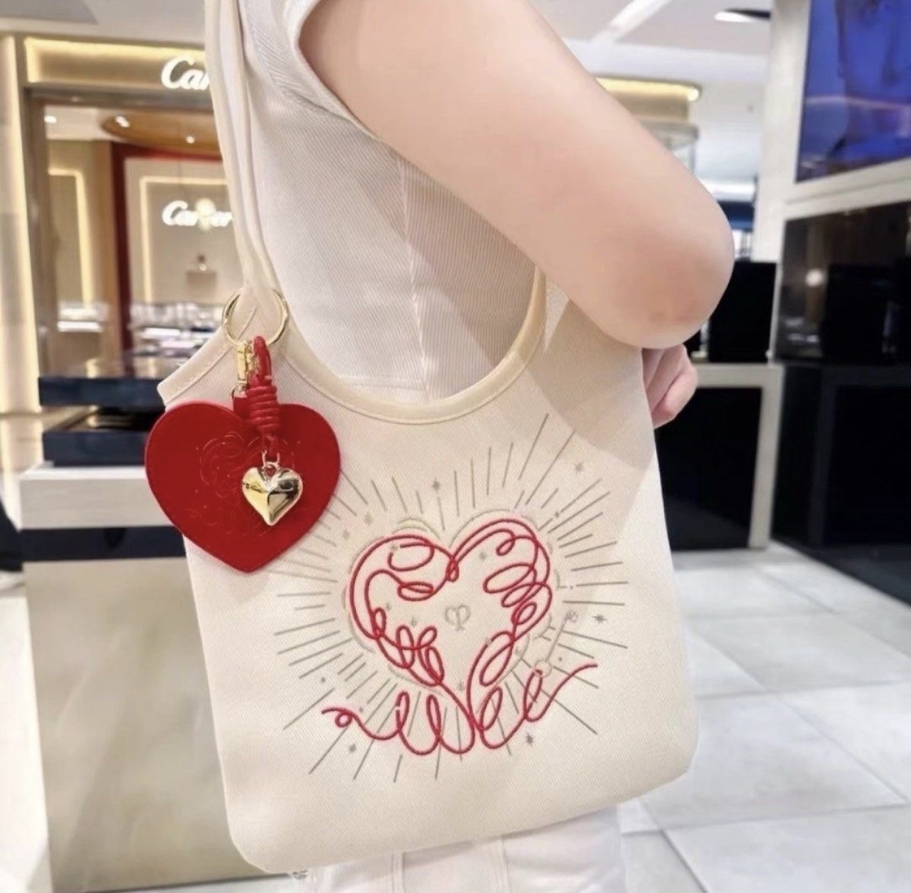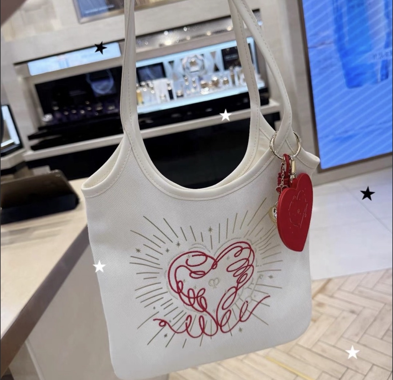 ⭐️CPB 七夕禮品⭐️ 心有靈犀愛心刺繡帆布 tote bag 連紅色鏡 托特包 單肩包 手挽袋