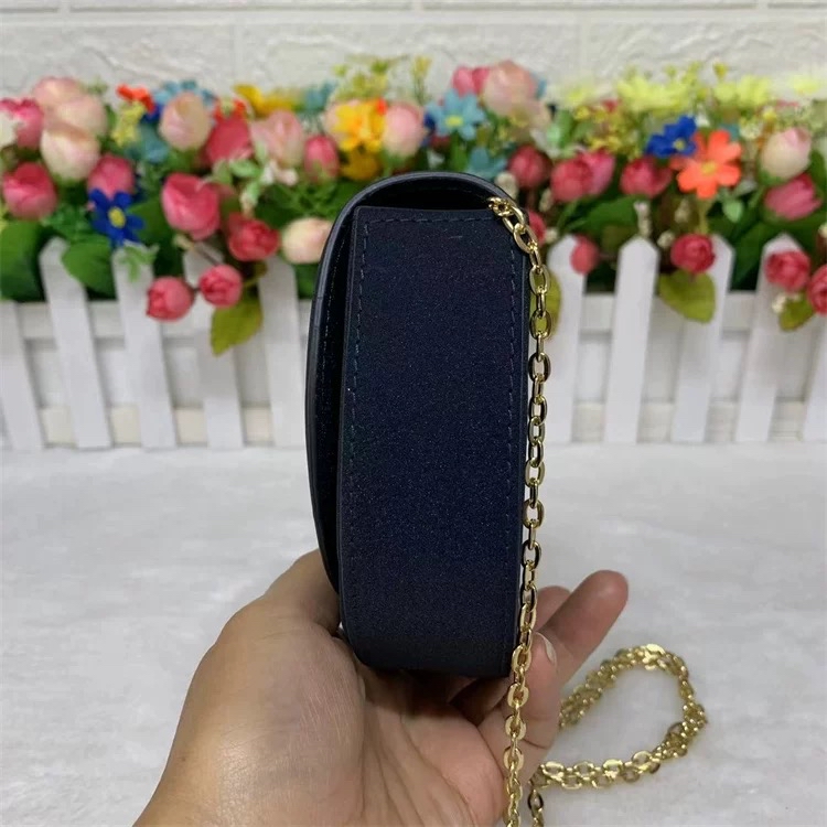 💯全新 最新款的CPB七夕禮品 將化妝包化成手袋❤️ 可以輕鬆收納少量化妝品或個人物品 復古藍色配上金色,條鏈非常搶眼高級 尺寸:13.5*10.2*3.6cm