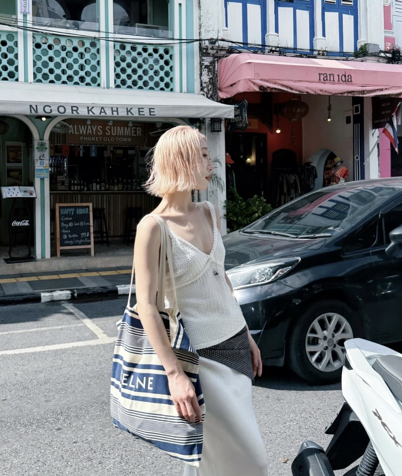 ⭐️Celine限定禮品⭐️ 凱旋門夏日南法風藍色條紋帆布tote bag 單肩袋