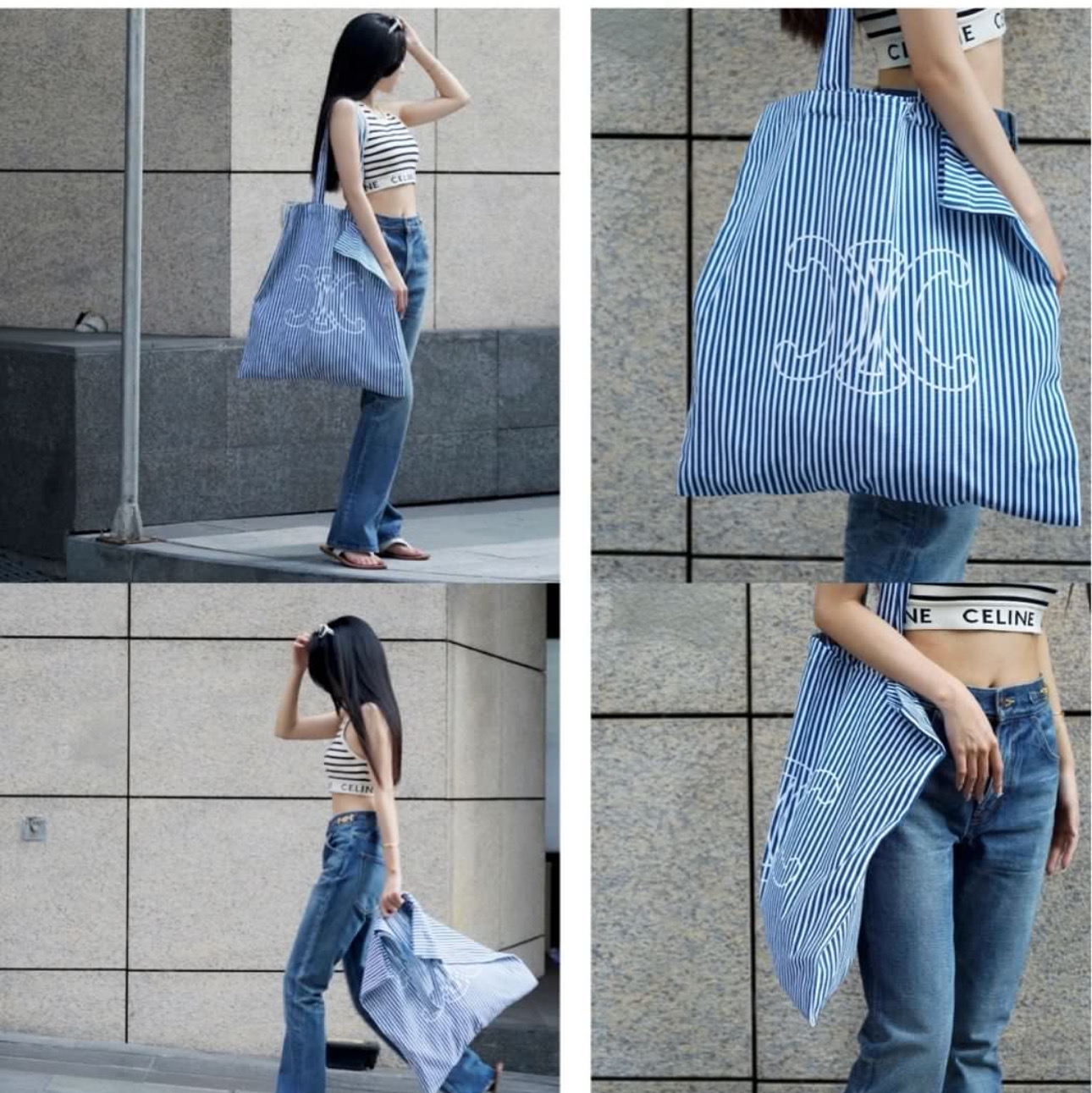 ⭐️Celine 限定贈品⭐️ 凱旋門藍色條紋帆布包女單肩包 手挽包