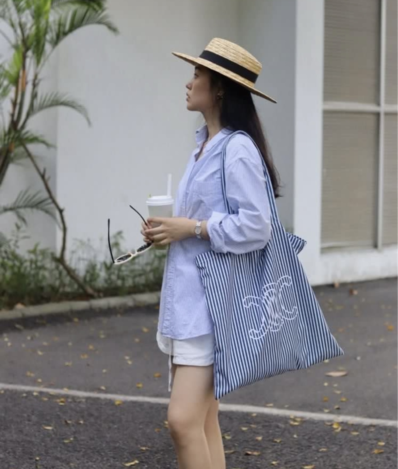 💯全新 Cel 凱旋門藍色條紋帆布購物袋 藍白條紋 完全是法式氛圍感的天菜選手 背它出街直接拿捏慵懶鬆弛感🫴 可作購物袋,返工袋,媽媽袋,一袋多用,性價比極高❤️ 大容量,兩尺寸選擇: 大號:49*48.5cm 小號:32*40cm