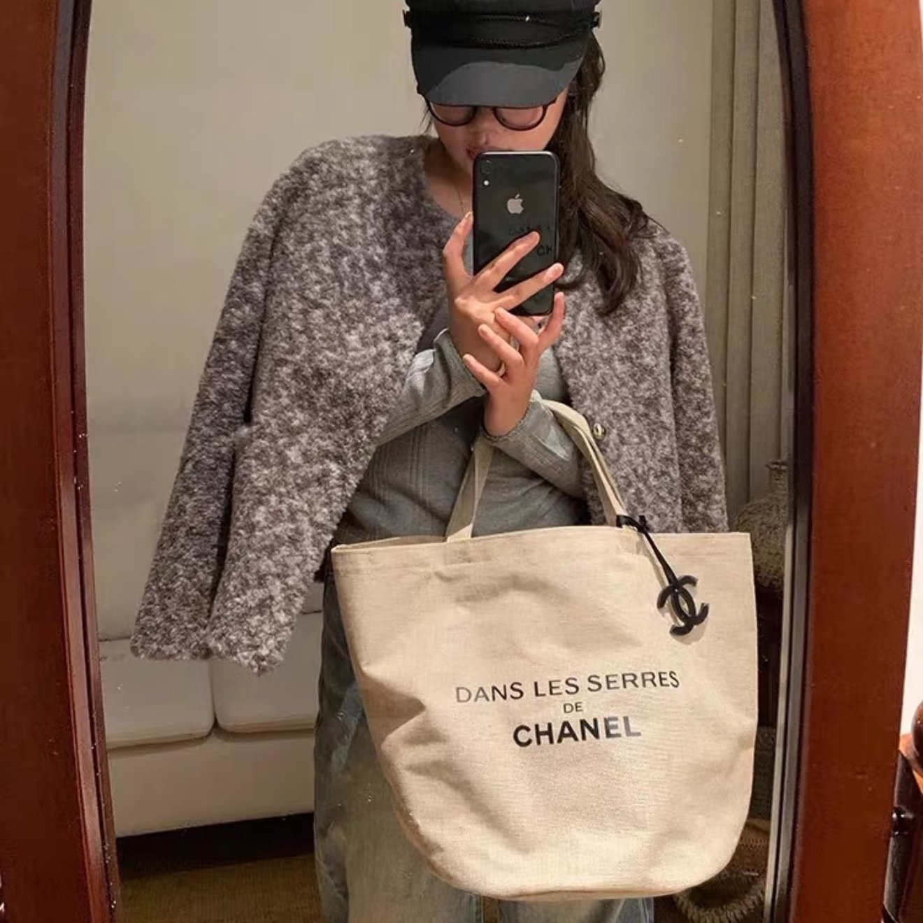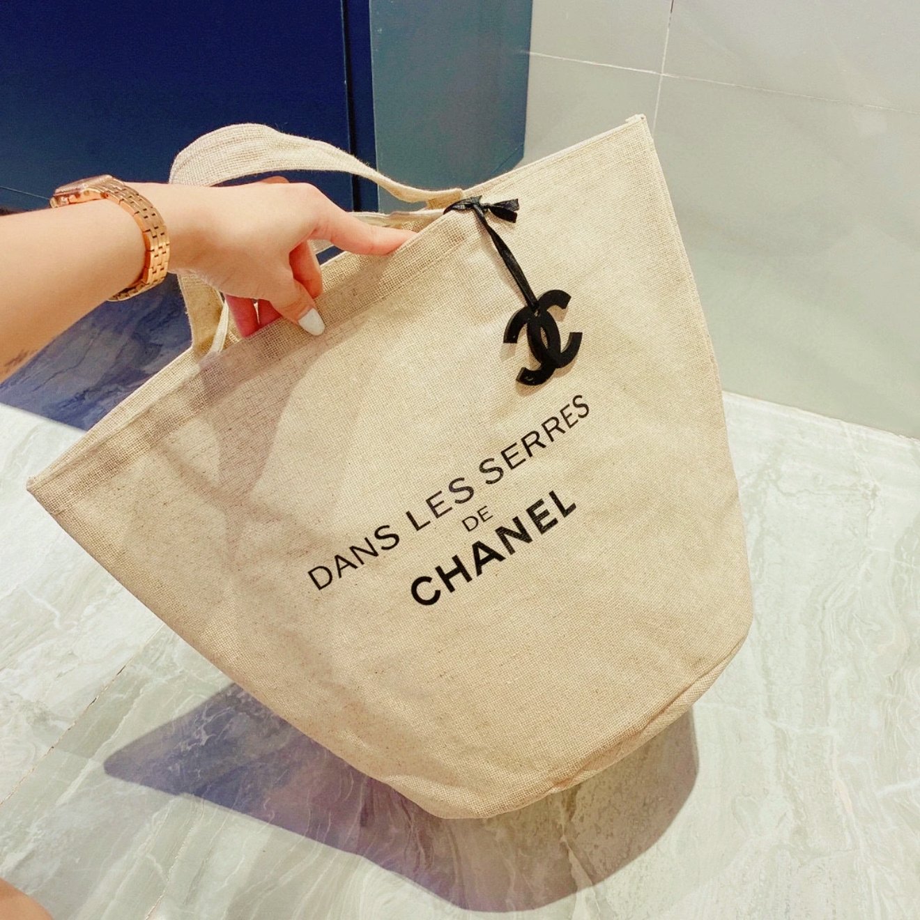 💯全新➕正品 香奈兒山茶花種植園特別紀念版托特包! 設計雖然超級簡單, 但是搭配小香經典CC logo又會讓人眼前一亮,復古而不失時尚👌 雖然它的材質是麻布的,但是完全不用擔心防水 的問題,包身整體都是做了防水覆膜層的‼️ 用途也是相當廣泛,不管是出門逛街,還是沙灘遊泳🏊做健身,做媽媽袋都可以! 容量驚人‼️多場景適用✅ 1⃣️日常穿搭,休閒裙子都ok 2⃣️旅行出行 ,海邊用它 拍照一絶 3⃣️帶小朋友出街,收納小朋友物品完全ok! 4⃣️遊泳收納,遊完水溼漉漉的泳衣拖鞋 隨便往裡扔! 5⃣️上班族日常帶個便當,拎點兒零食,裝下文件 妥妥的 6⃣️購物買菜 尺寸:45*26*30cm (底部直徑:26cm)