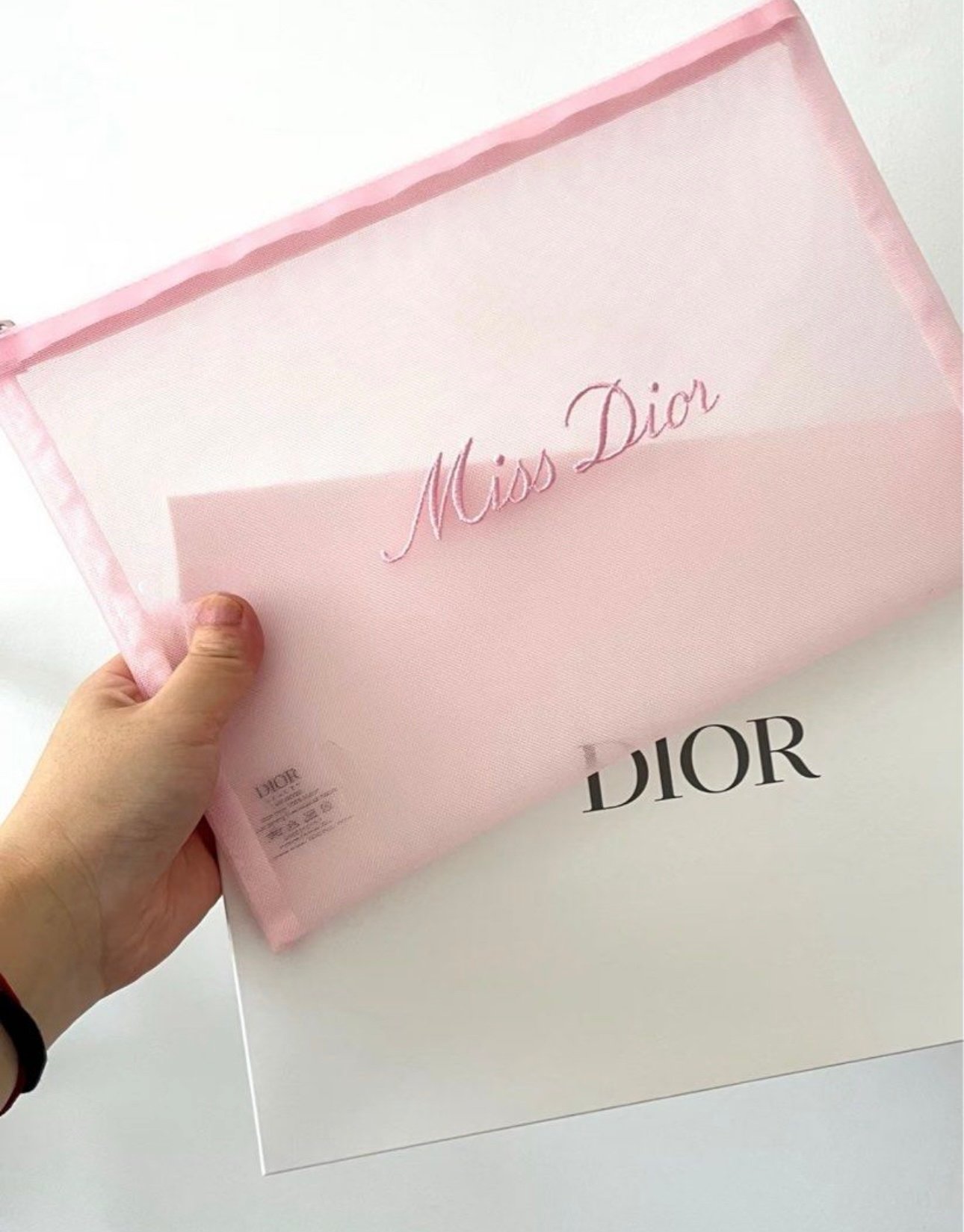 ⭐️Dior Beauty⭐️粉色刺繡網紗化妝包 收納包 手拿包
