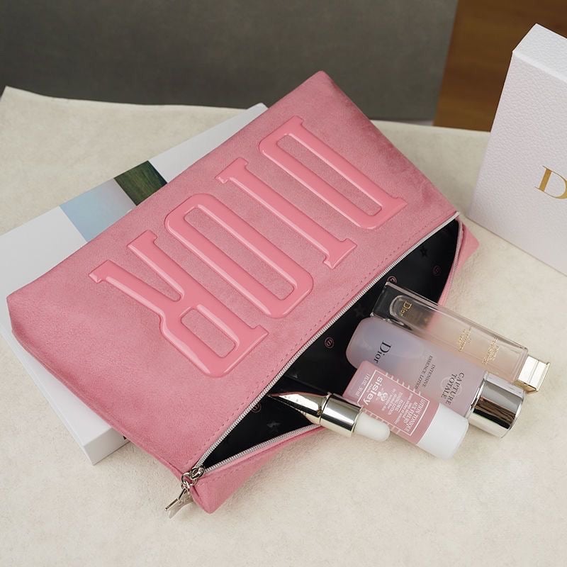 ⭐️Dior Beauty⭐️粉色絨感皮質化妝包收納袋 手拿包