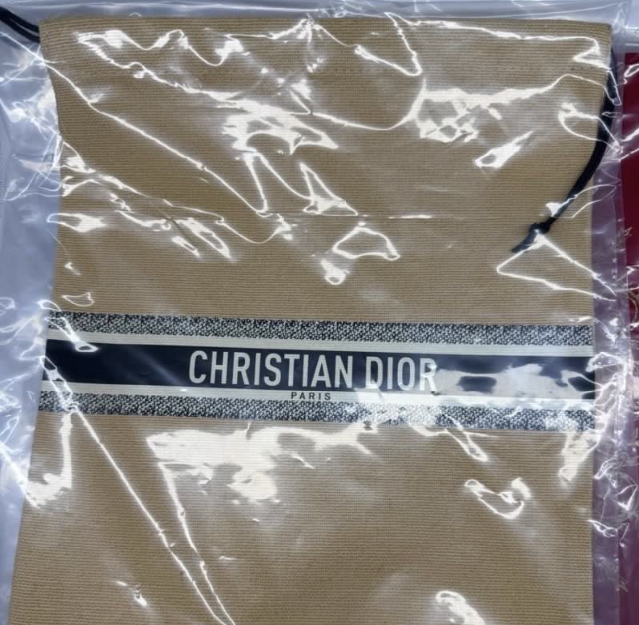💯全新 Dior 經典圖案亞麻帆布索繩袋 容量非常大,可以收納大量化妝品護膚品或者放輕便衣服收納袋都得! 尺寸:28*23.5cm