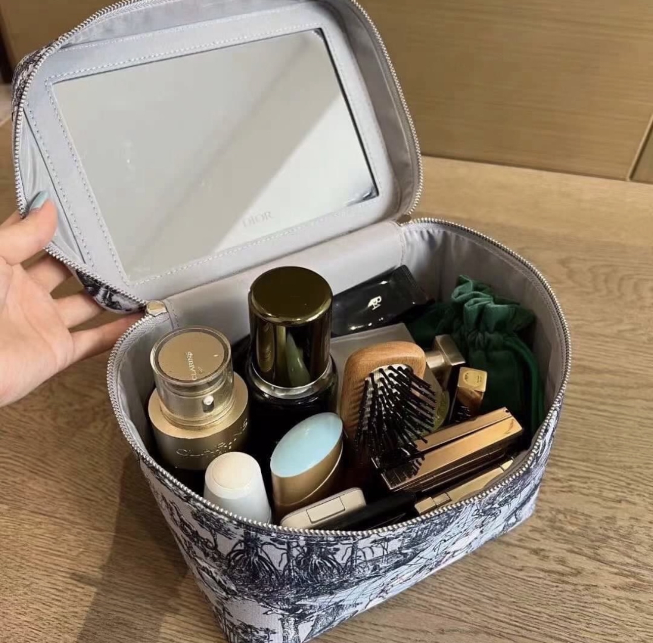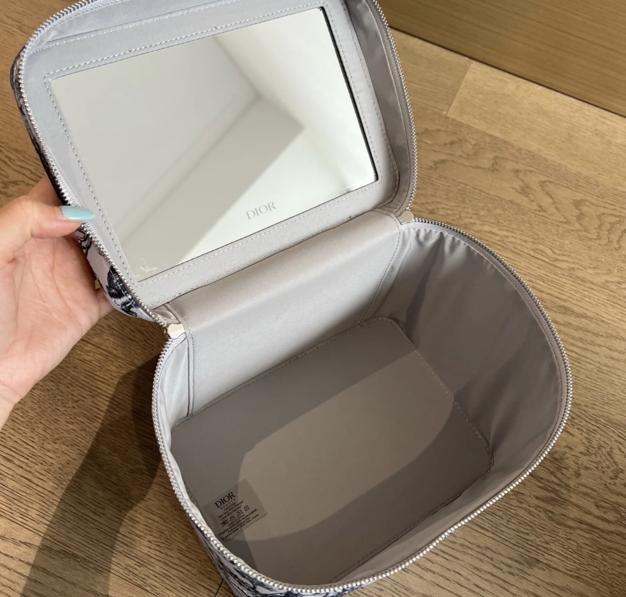 💯全新 Dior 最新限量新款 好輕!用來出門旅遊用一流,容量十分大,放日常用護膚品化妝品絕對無問題👌🏻 而且化妝箱自帶鏡子,即時護膚化妝補妝🆗 材質:編織麻質 尺寸:21*15*16cm