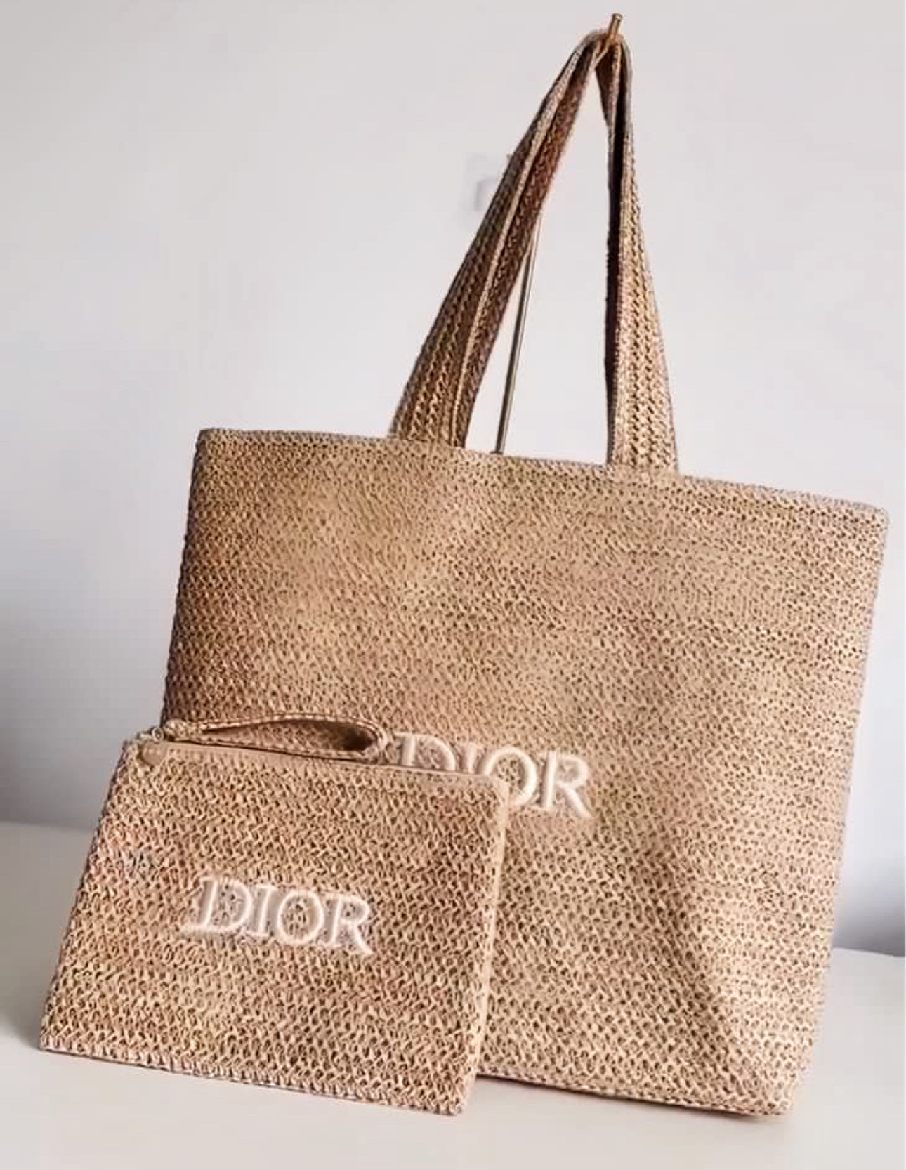 ⭐️Dior Beauty⭐️ 米色編織草編特大Tote Bag 托特包 手提包 單肩包 大容量沙灘包 媽咪袋