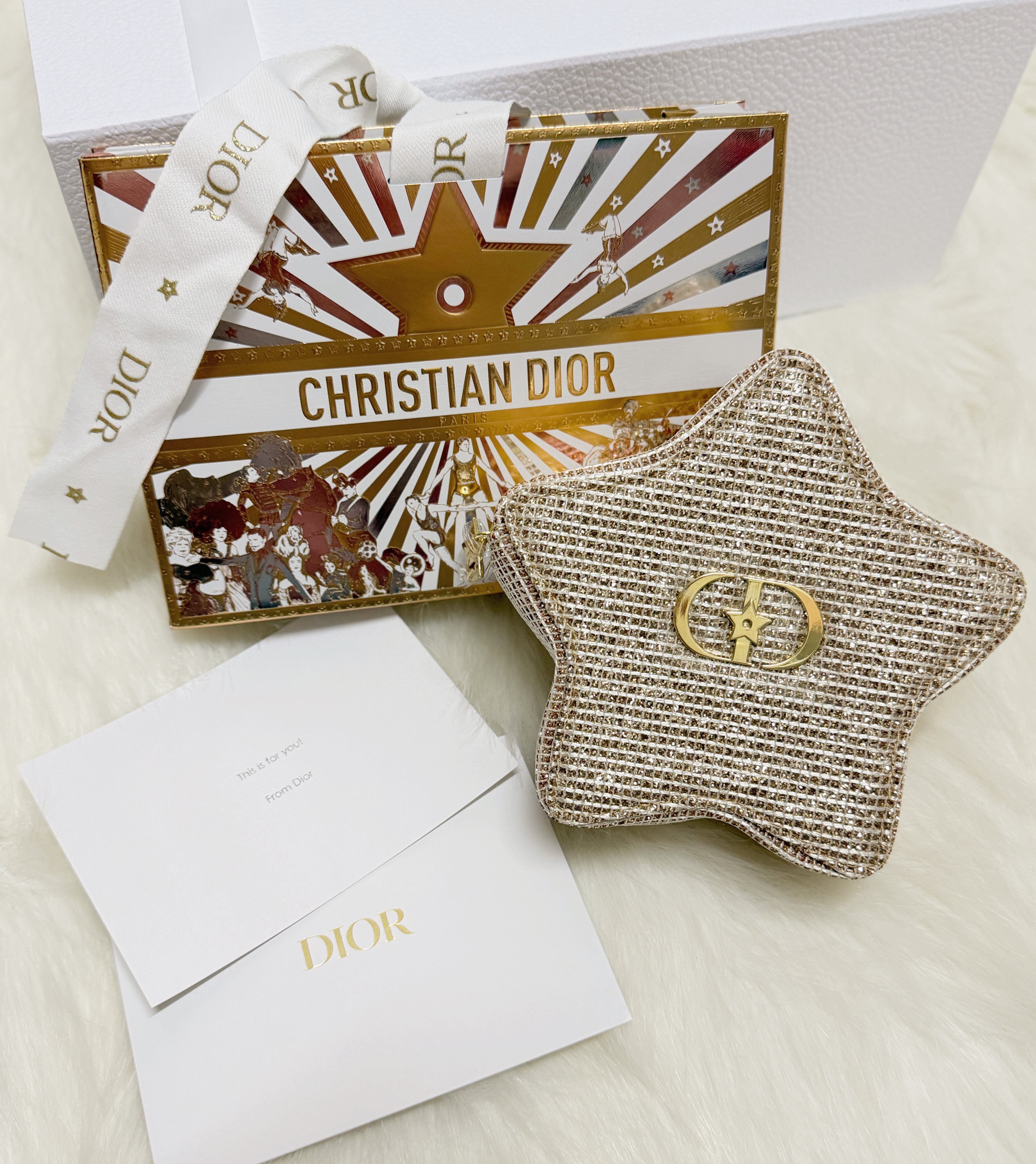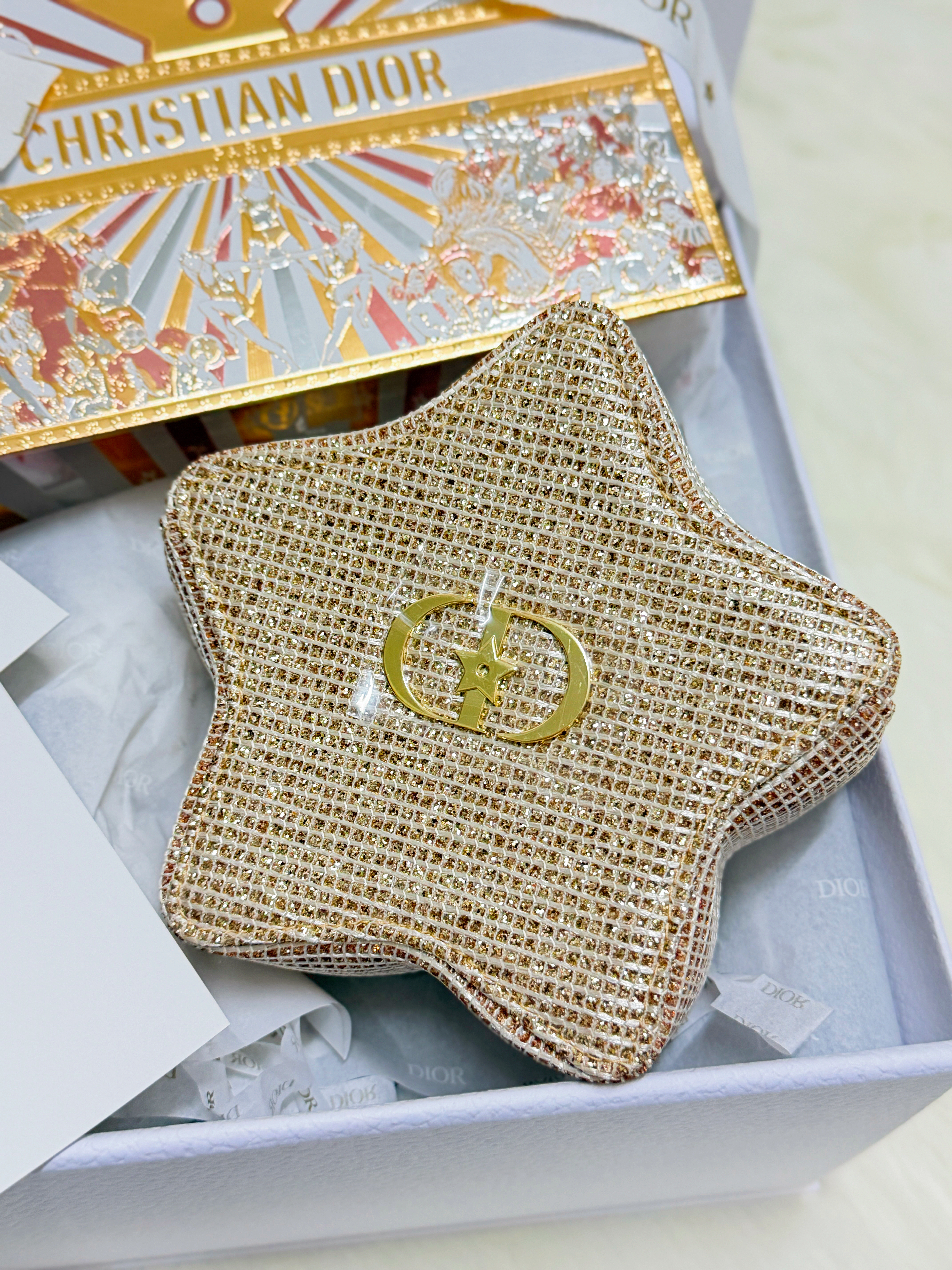 💯全新➕香港官網正品(有單據供參考) ⭐️現貨實拍⭐️ 🎄Dior 2025年聖誕馬戲團系列贈品🎁 呢款未推出前已經大熱,Dior 聖誕贈品已經成為每年必收納之物! 今年Dior聖誕化妝包真係超級美,金色包身顯得非常名貴,完全切合閃閃生輝聖誕氣氛🎄 幸運星設計,配上亮面金屬品牌logo,CD上配有幸運星⭐️ 化妝包拉鍊也是幸運星設計,給使用者帶來一個閃閃幸運的聖誕🧑🎄 全套 1️⃣星星化妝包 2️⃣聖誕限定紙袋連聖誕限定絲帶 3️⃣禮物卡 ❗️此包包會有輕微掉金粉,屬正常現象,介意勿拍🙏🏻 ⭐️⭐️⭐️⭐️⭐️⭐️⭐️⭐️⭐️⭐️⭐️⭐️⭐️ 另外可以連Dior 25聖誕限定金色長方化妝包一起購買❤️ 兩個一起購買會送原裝Dior Beauty盒子和絲帶,一整盒配送 ❤️❤️❤️ (見最後圖) Dior 25聖誕限定金色長方化妝包見⬇️ https://mpbuy.boutir.com/i/V2bdorgAA