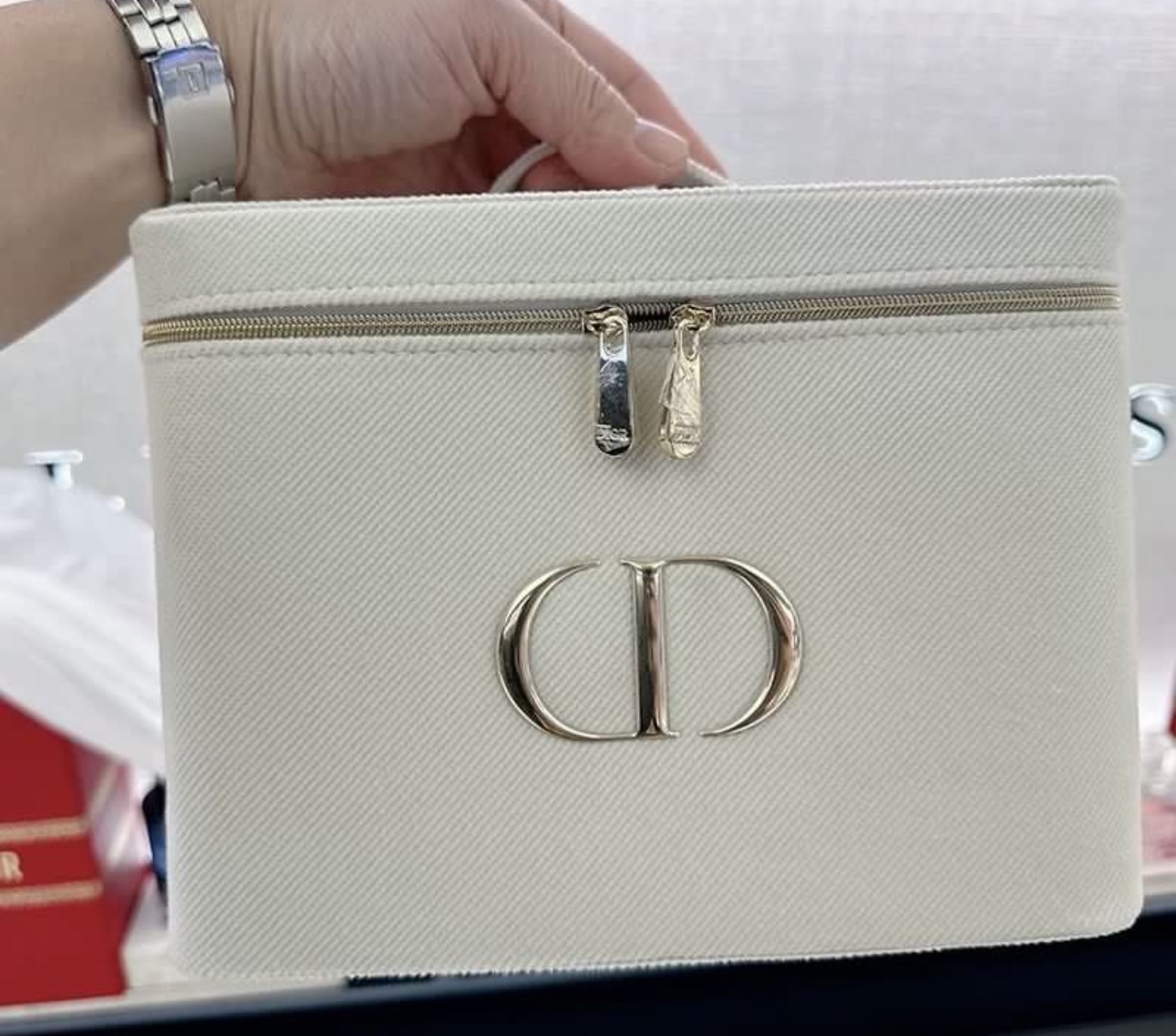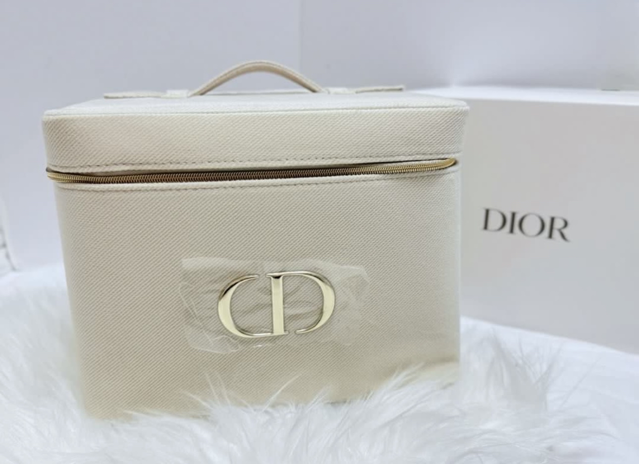 💯全新➕正品 Dior Beauty VIP 贈品白色化妝箱 化妝箱包含五件物品: 1️⃣超大帆布化妝箱 (尺寸:22*16*16cm) 2️⃣真絲眼罩 3️⃣真絲髮圈 4️⃣瓦克力磁吸收納盒 5️⃣迪奧化妝棉 超高顏值,值得入貨的一套❤️
