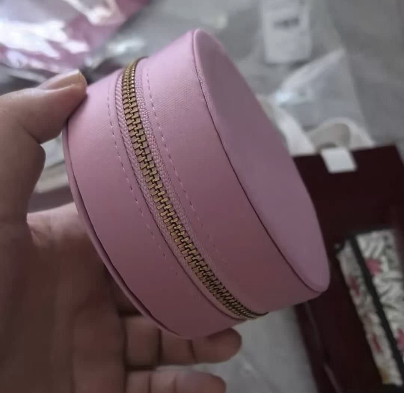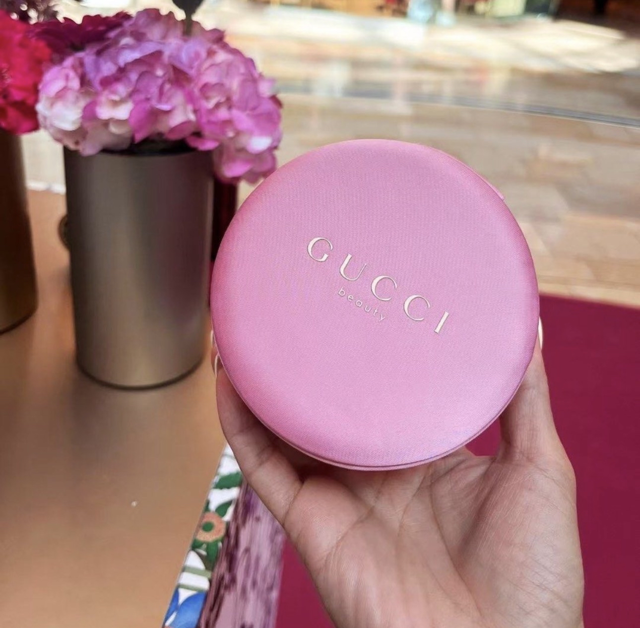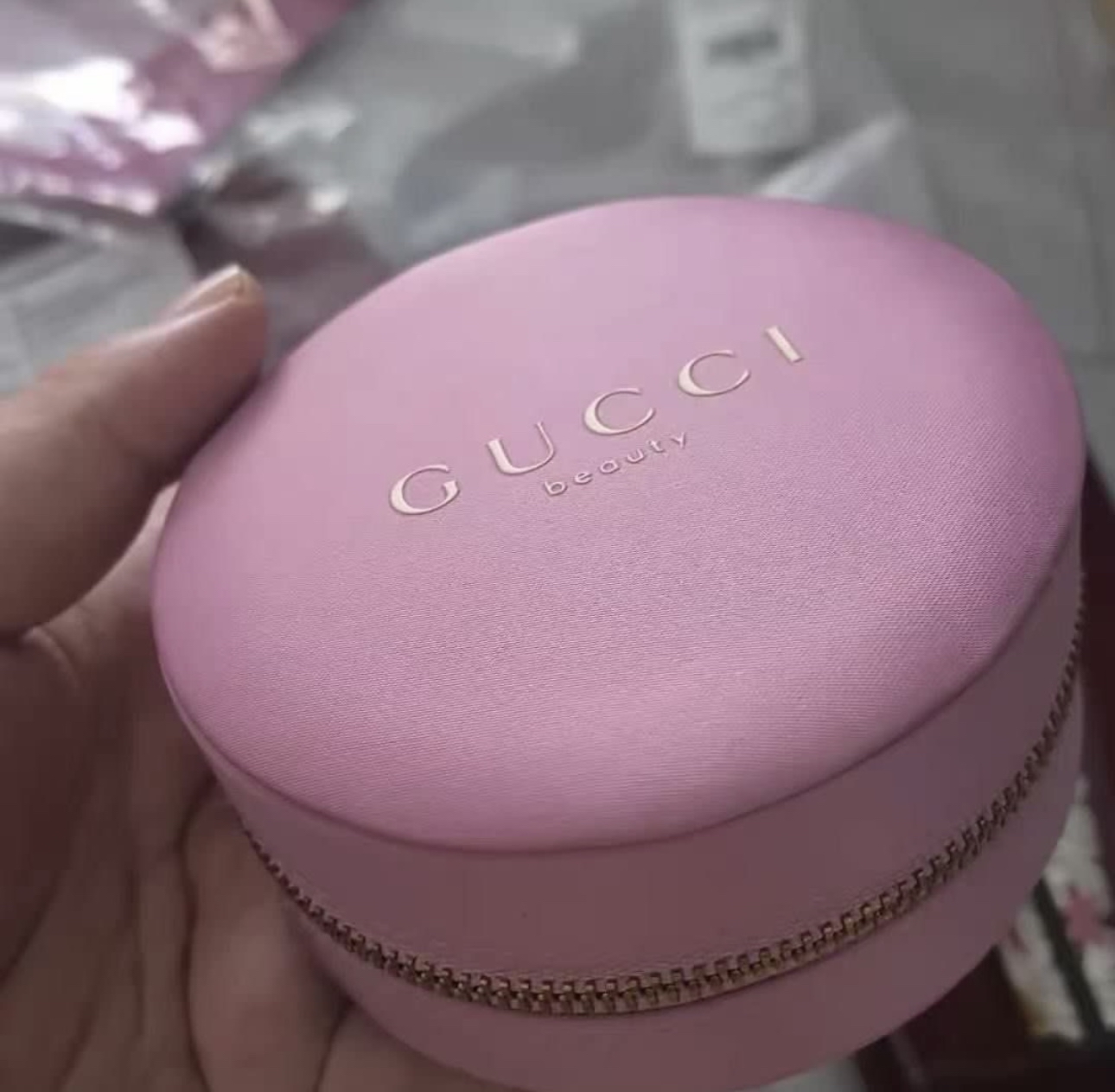 ⭐️Gucci Beauty⭐️粉色絲絨質感圓餅化妝包 內帶繩索 收納包 首飾包