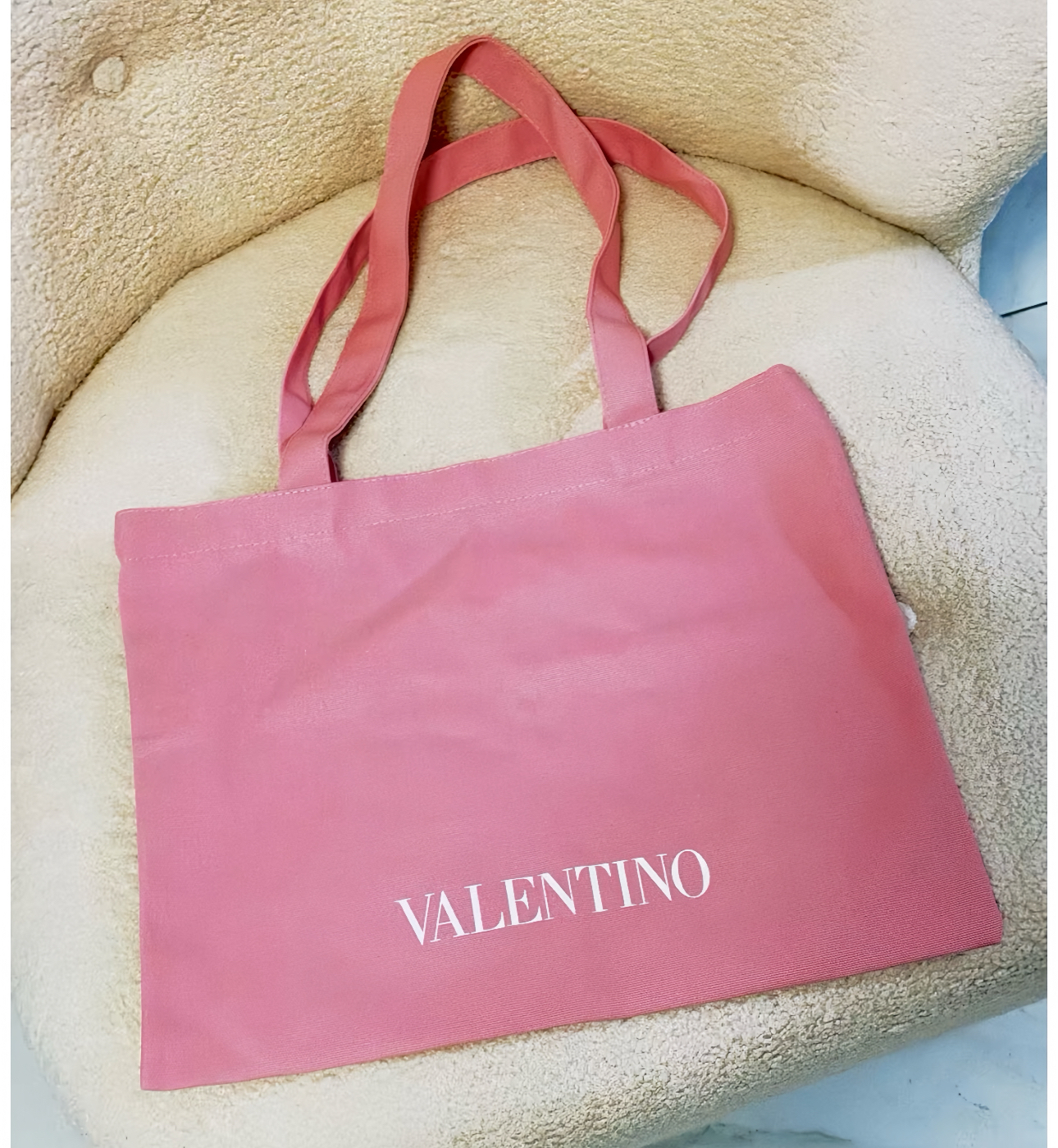 💯全新 ➕ 正品 華倫天奴七夕情人節贈品之一 玫紅色包包比嫩粉色更加高尚白鴿,襯衫也容易✅ 雙面設計,兩面都可以用。一面是華倫天奴英文字樣,另一面是品牌logo,隨你心情使用那一面😊 帆布設計輕巧耐用,容量都足以應付日常逛街,甚至上班👌🏻 尺寸:38*33cm 肩帶:32cm