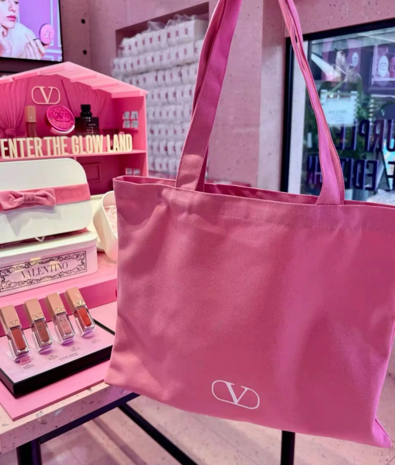 ⭐️Valentino Beauty⭐️ 華倫天奴雙面玫粉色帆布包 Totebag 單肩包 購物袋