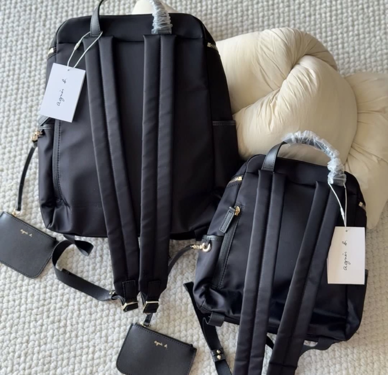 💯全新 Agnés B 尼龍質料防水背囊 尼龍防水質料超輕巧 足夠格數分層設計,方便整理收納各類型大小物品 仲有個小收納包供收納小型物品❤️ 兩種尺寸任君選擇: 中號:22*12*26cm ($250) 大號:28.5*14*35cm($260)