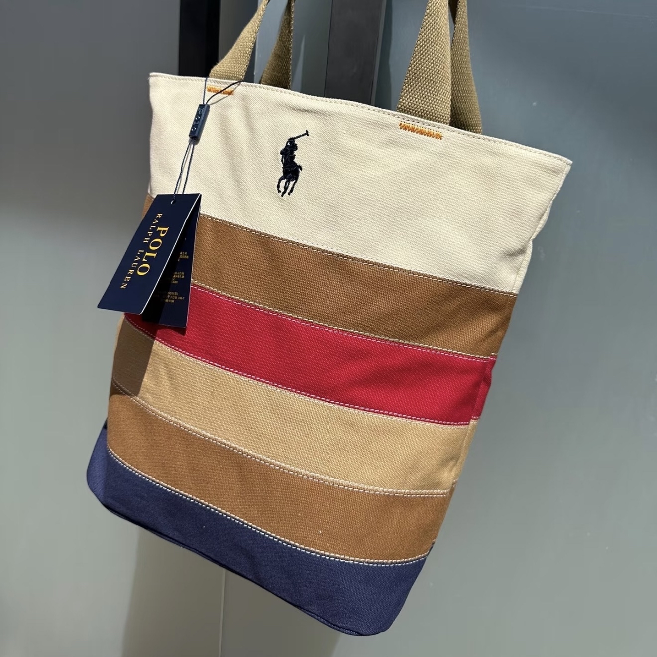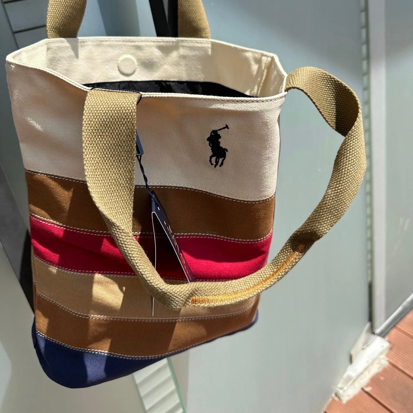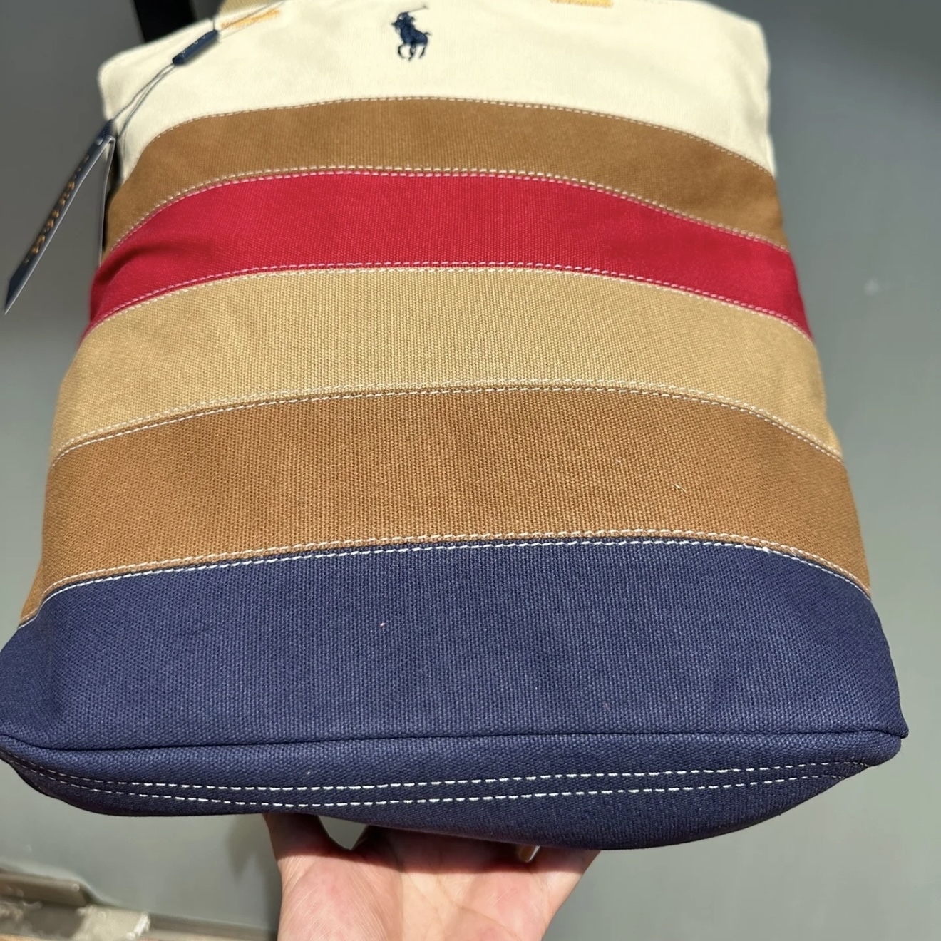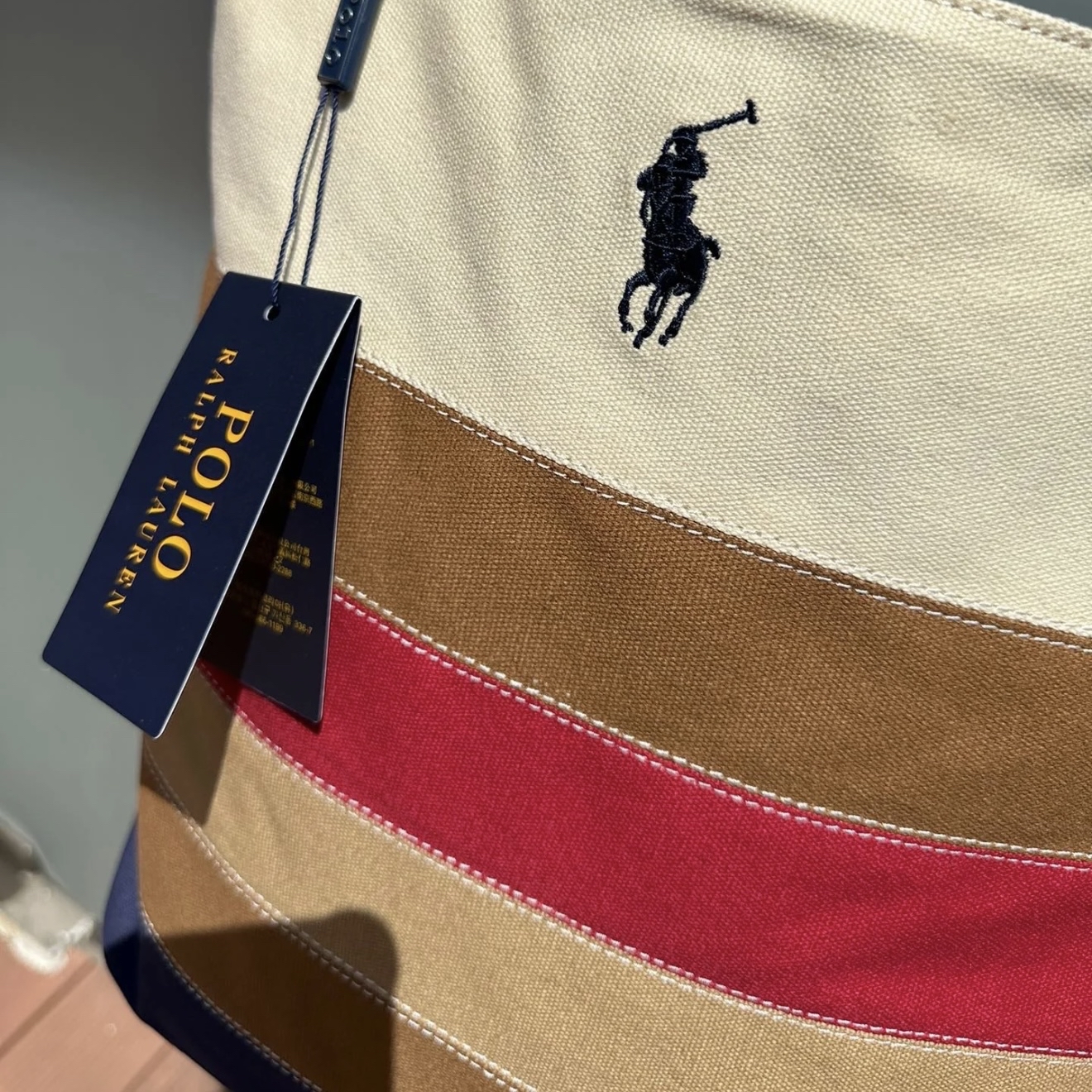 Polo RL 刺繡小馬間條帆布包 托特包 Totebag 購物袋